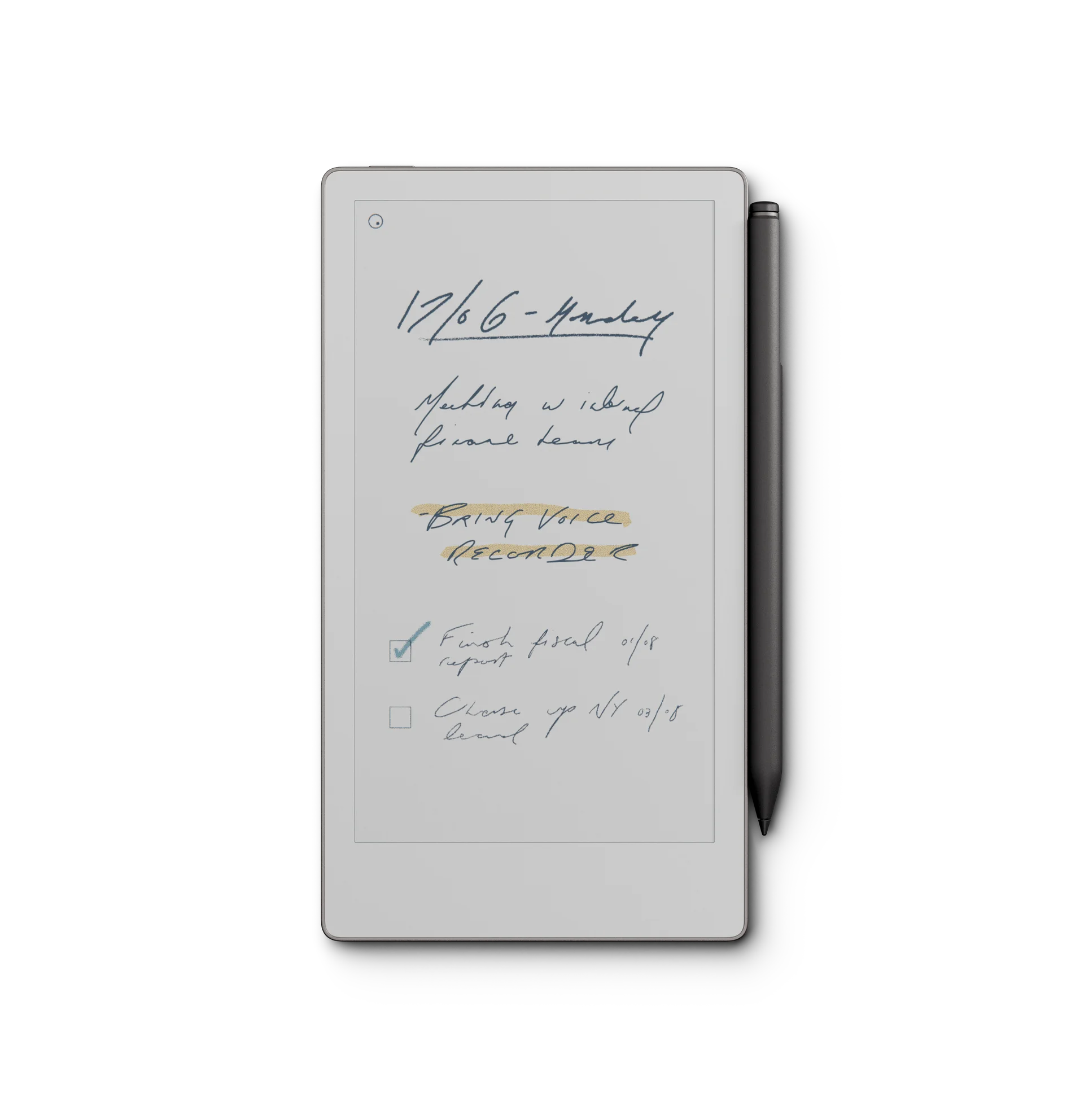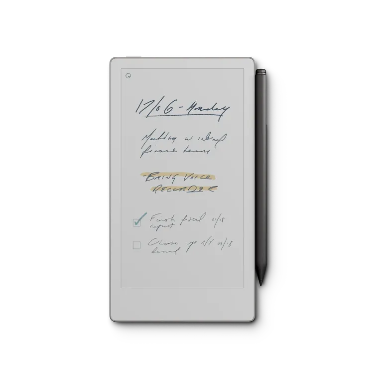 Ten cyfrowy notatnik waży mniej niż książka w miękkiej oprawie, a jednocześnie mieści wszystkie Twoje dokumenty. Bateria wystarcza nawet na dwa tygodnie pracy, a szybkie ładowanie pozwala uzupełnić energię od 0 do 90% w mniej niż godzinę.