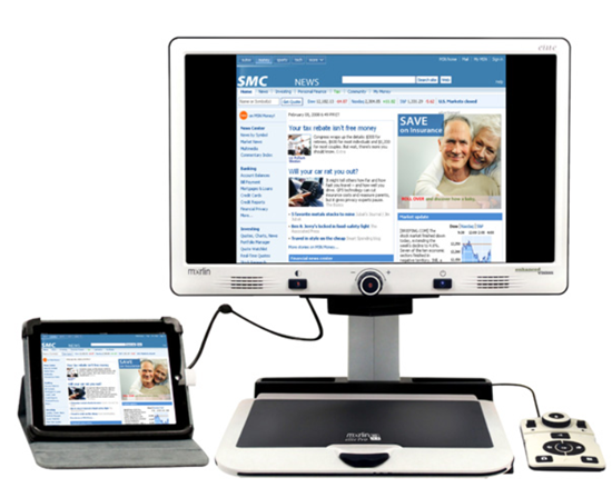 Merlin Elite Pro HD OCR to zintegrowane urządzenie, łączące funkcje stacjonarnego powiększalnika wideo CCTV z funkcjami urządzenia lektorskiego i z rozpoznawaniem OCR całych stron A4, a także ich odczytywaniem syntetycznym głosem. Merlin Elite Pro umożliwia osobom niewidomym i niedowidzącym czytanie poprzez słuchanie lub oglądanie tekstu powiększonego od 2,4 do 70 x, w pełnym kolorze, w trybach o wysokim kontraście, w pozytywie lub negatywie. Dzięki wygodnym w użyciu przyciskom, pokrętłom i udźwiękowionemu menu, można w prosty sposób powiększać lub zmniejszać tekst i zmieniać opcje wyświetlania. Urządzenie zostało wyposażone w kamerę Full HD Sony® o rozdzielczości 1080 pikseli i w opcję całostronicowej zamiany tekstu na mowę (OCR). Kamera Merlin Elite Pro o wysokiej rozdzielczości i dużym polu widzenia wyświetla ostre obrazy w żywych kolorach i w dużym kontraście, na 24-calowym monitorze LCD. Po naciśnięciu jednego przycisku Merlin Elite Pro przechodzi z trybu podglądu na żywo do pełnostronicowego trybu OCR i odczytuje rozpoznany tekst polskim głosem lektora. Po podłączeniu słuchawek (brak w zestawie), można dyskretnie czytać rozpoznane dokumenty. Ruchomy stolik XY pozwala płynnie przesuwać dokumenty pod kamerą. Dla większej wygody stolik można zablokować podczas pisania. Korzystanie z Merlin Elite Pro ułatwia konsola sterująca z pokrywą, umożliwiająca dostosowywanie funkcji i przełączanie między trybami podstawowym i zaawansowanym. Po nałożeniu pokrywy urządzenie przechodzi w tryb podstawowy, zaś po jej zdjęciu w tryb zaawansowany. W trybie podstawowym dostępnych jest mniej funkcji, ale urządzenie jest łatwiejsze w obsłudze. Uzyskuje się wówczas dostęp do funkcji niezbędnych do powiększania obiektu lub wykonywania skanowania OCR. Tryb zaawansowany udostępnia opcje biblioteki, zapisywania zeskanowanych dokumentów, przywracania ustawień domyślnych, znaczników stref i nawigacji liniami w trybie OCR. Merlin Elite Pro zapisuje rozpoznane dokumenty, obrazy lub książki i umożliwia przesyłanie plików do komputera. Obsługiwane są pliki w formatach txt, rtf, jpg, pdf lub doc. W pamięci wewnętrznej urządzenia można zapisać co najmniej 1000 stron. Merlin Elite Pro to doskonałe rozwiązanie dla niedowidzących użytkowników poszukujących wydajnego, uniwersalnego powiększalnika wideo z funkcją lektorską, do zastosowania w domu, w pracy, w szkole lub na uczelni. Przy użyciu Merlin Elite Pro można ponadto pisać listy, przeglądać kolorowe zdjęcia, rozwiązywać krzyżówki, zajmować się ulubionym hobby, majsterkowaniem lub szyciem. Po podłączeniu do urządzenia myszy można grać w Sudoku, Reversi, w kółko i krzyżyk lub układać pasjanse.