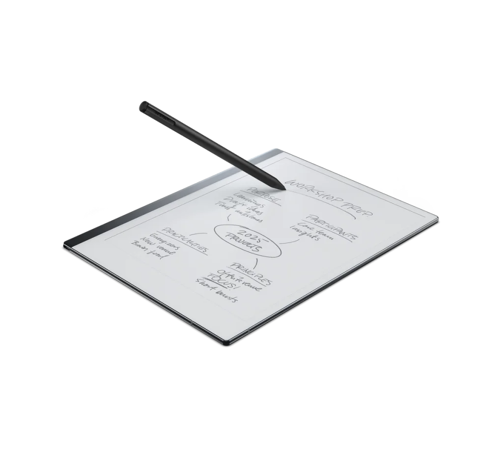 - Ultracienki tablet E-Ink 10,3” stworzony do notatek, szkiców i czytania. Daje naturalne wrażenie pisania po papierze dzięki specjalnemu markerowi (bez baterii).
